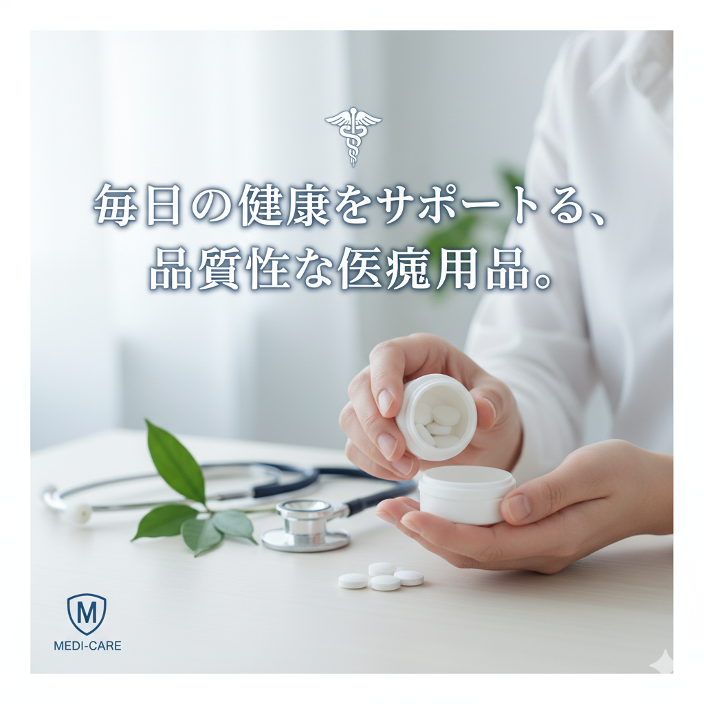 「MEDI-CARE」は最新の科学的知見に基づき開発された高品質ヘルスケア商品です。専門家が厳選した成分のみを使用し、あなたの毎日の元気を力強くサポート。ご家族皆様の健康習慣にお役立てください。(105文字)