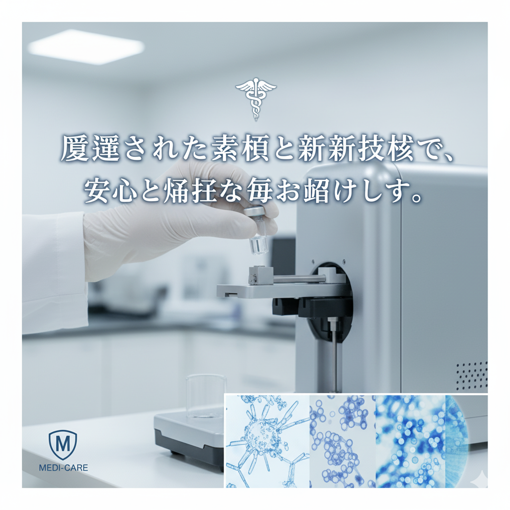なんだか不調が続く…そんなあなたに。日々のパフォーマンスを支える「MEDI-CARE」。こだわりの成分が内側からアプローチし、健やかな毎日をサポートします。確かな品質を、ぜひご体感ください。(104文字)